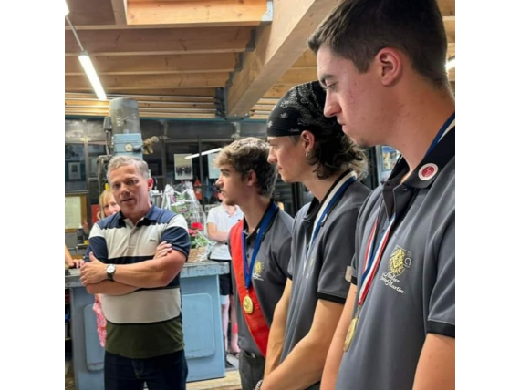 En ce jour festif, chacun aura présenté au public son ouvrage en lice lors du concours de Meilleur apprenti de France dans le domaine de la métallerie ferronnerie serrurerie, à savoir, une malle pour Camille, les anneaux olympiques pour Alexis et un miroir pour Romain. Chacun de ces jeunes aura affiné ses connaissances pratiques, y compris aux côtés de notre cher Dédé, si doué et si prompt à transmettre lui aussi.