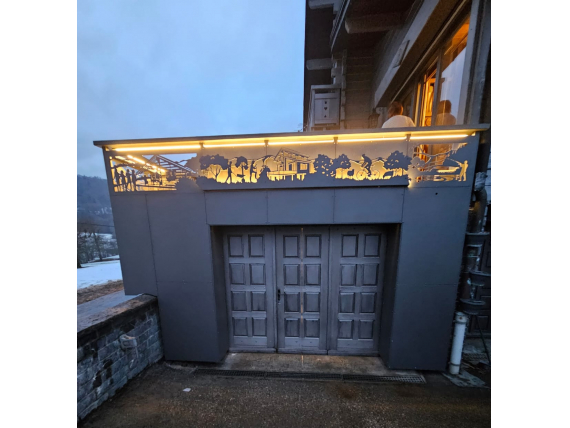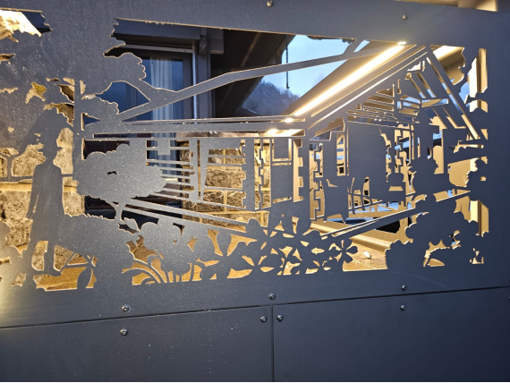 À Mieussy en Haute-Savoie, notre équipe, composée de Sara Moris, d'Alexis Parchet et de moi-même, a eu la joie de poser la fresque décorative personnalisée avec LED intégrées, commandée par des clients très satisfaits ! Merci à eux pour leur confiance ! Ces derniers souhaitaient des dessins, saynètes, en lien avec l'histoire de leur famille, leurs passions, leur amour de la montagne ou encore du vélo.