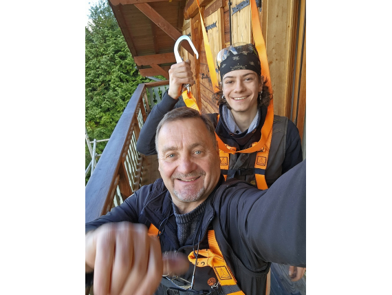 En juillet 2024, le pré montage des panneaux à l'extérieur de l'atelier s'était organisé avec les apprentis Alexis Parchet et Romain Carrey, encore avec nous avant son départ chez les Compagnons du Devoir.