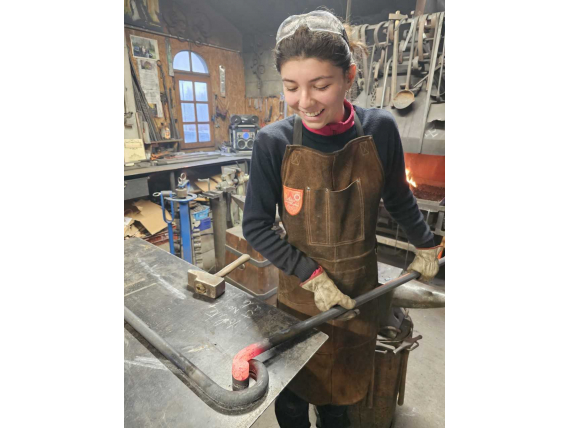 Création de la rampe d'escalier en fer forgé par Sara Moris.