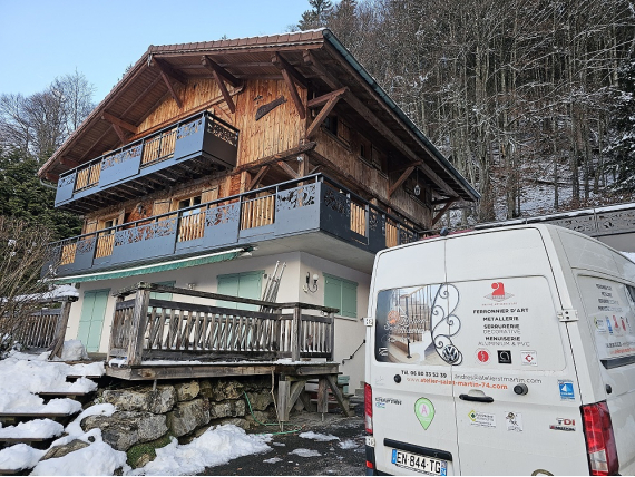 Toutes les pièces de métallerie, ferronnerie et acier galvanisé sont créées et fabriquées sur place à l'atelier sis à Morillon, Haute-Savoie.